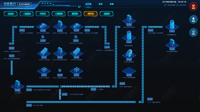 DCS礦山生產(chǎn)及管理系統(tǒng)通過低壓配電系統(tǒng)與礦山砂石生產(chǎn)線設(shè)備連接,實(shí)現(xiàn)生產(chǎn)線一鍵啟?刂、連鎖保護(hù)、設(shè)備狀態(tài)監(jiān)測、自動布料等功能,全流程設(shè)備集中快速、統(tǒng)一控制管理。
