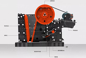 電機帶動皮帶跟皮帶輪,通過偏心軸讓動顎進行上下運動,當動顎上升的時候,肘板會和動顎之間的夾角變大,從而推動動顎板往固定顎板接近,同時其中的物料會被壓碎或劈碎,達到破碎的目的,當動顎下行時,肘板和動顎之間的夾角會變小,動顎板在拉桿、彈簧的作用下 ,離開固定顎板,同時已經破碎的物料從排料口排出。