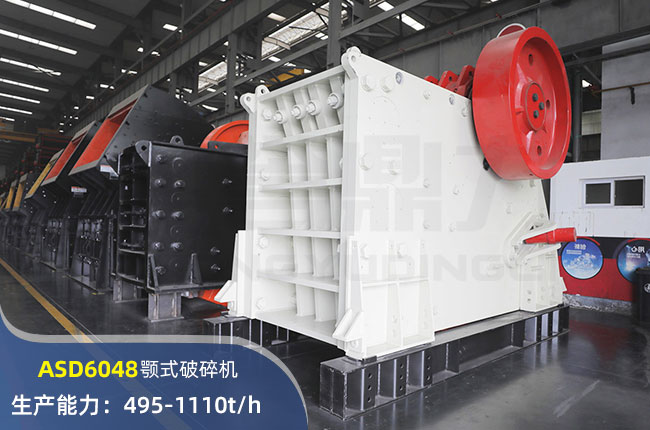 ASD6048顎式破碎機產量在時產495-1110噸,屬于中型的一破設備,通常使用在碎石生產線上做一破使用。