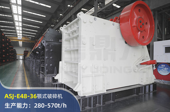 ASJ-E48-36顎式破碎機進料口尺寸1220×910mm,進料粒度≤850mm,出料大小≤100mm,電機功率160kw,時產(chǎn)在570噸左右。