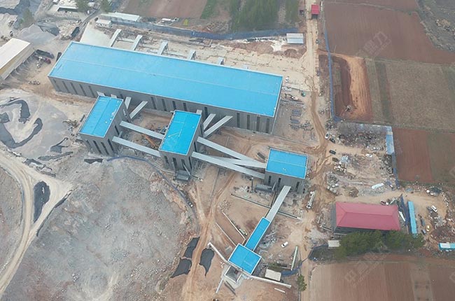 設備配置:有給料機、重錘破、整形機、振動篩、輸送機等設備。