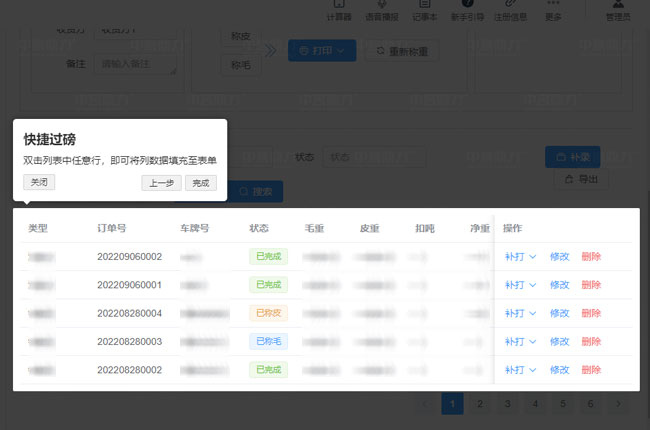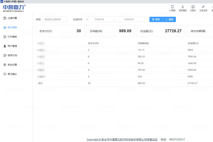 3、統計報表,統計稱重數據、車次、可計算金額;
