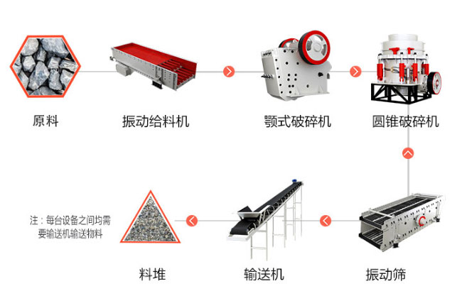 震動(dòng)喂料機(jī)+顎破+圓錐打石機(jī)+礦山振動(dòng)篩分機(jī)+制砂設(shè)備+皮帶機(jī)