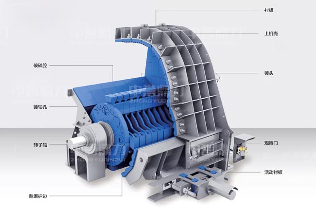 1615重錘式破碎機(jī)可以通過活動(dòng)襯板控制出料大小。有些錘破廠家會(huì)采用篦條或篩板,只需要根據(jù)成品需求調(diào)整篦條或篩板間隙即可。