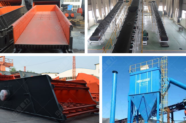 4、其余配置:喂料機、膠帶輸送機、篩分機,大型洗石機等,還有防塵體系、降噪體系、噴淋體系、統一控制體系等綠色型生產。