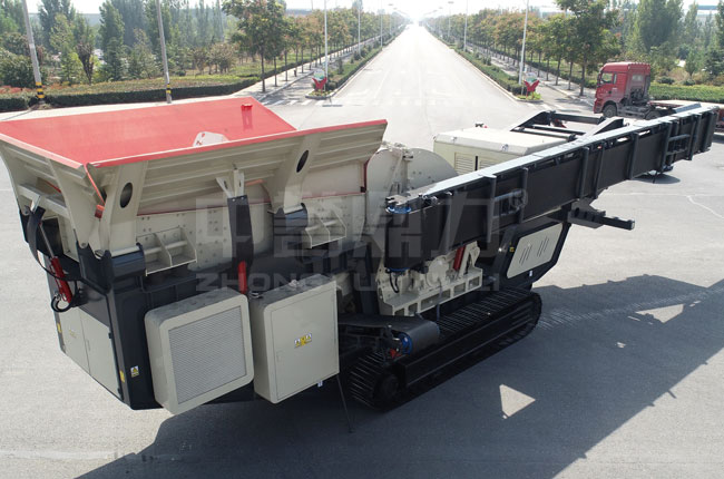 車載移動破碎機設備根據底盤移動機架分為輪胎式和履帶式,從破碎程度又有粗碎、中碎、細碎之分。