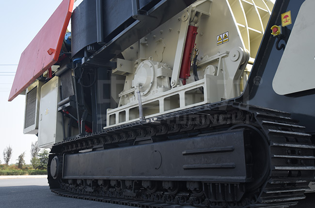 履帶式移動破石機(jī):履帶底盤機(jī)架,會對路面造成損壞,不適合長距離運輸,但履帶抓地力強(qiáng),可以爬坡,能適應(yīng)各種復(fù)雜、惡劣的環(huán)境。可用于礦石、尾礦的破碎。