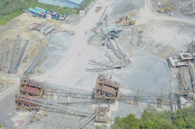 整條生產線由振動給料機、重錘破、雙轉子制砂機、整形機、振動篩組合而成,可以同時生產出石料和砂子,可謂是兩用。