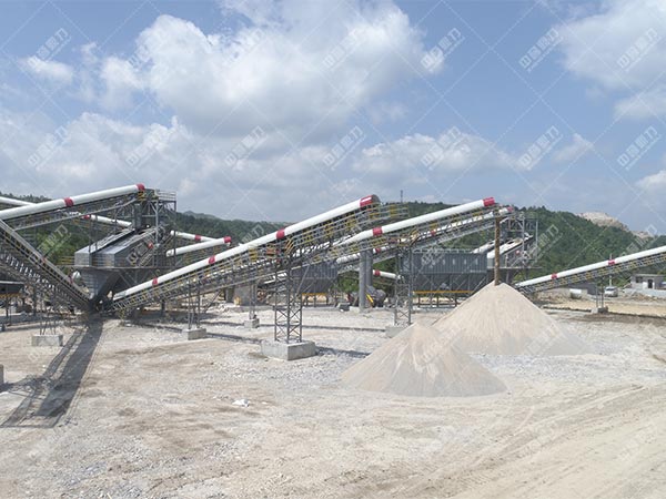 先,石頭由送料機(jī)均勻地送進(jìn)粗碎機(jī)進(jìn)行破碎,然后,產(chǎn)成的粗骨料由皮帶運(yùn)輸機(jī)運(yùn)輸至反擊礦山碎石機(jī)進(jìn)行深度破碎,整型破碎后的石頭進(jìn)振動篩篩選分級出不同性能的石子,不粒度合格的石子返料進(jìn)反擊礦山碎石機(jī)又一次破碎,毛料經(jīng)料堆由振動送料機(jī)均勻地送進(jìn)pe鄂破機(jī)進(jìn)行粗碎,粗碎后的石頭由皮帶運(yùn)輸機(jī)送入反擊礦山碎石機(jī)進(jìn)行深度破碎;整型破碎后的石頭由皮帶運(yùn)輸機(jī)送進(jìn)振動篩進(jìn)行篩選分級,篩選分級出多種不同性能的石子,粒度合格的石子由成品皮帶運(yùn)輸機(jī)送往成品骨料堆;不粒度合格的石子由皮帶運(yùn)輸機(jī)返料送入反擊礦山碎石機(jī)進(jìn)行又一次破碎,形成閉路多次循環(huán),成品粒度可根據(jù)用戶的需要進(jìn)行組合和分級,為保護(hù)環(huán)境,可搭配輔助的除塵機(jī)械。