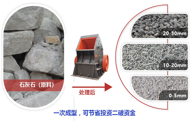 主要用于粉碎白云石及抗壓力度低于200MPa硬度適中的物料,原料粒度不過1200毫米時能契合“一次成型”,為用戶縮小花費,單臺才可以完成粉碎、整型,成品形狀好,送料粒度不過1200毫米、產能100-3000噸/時。