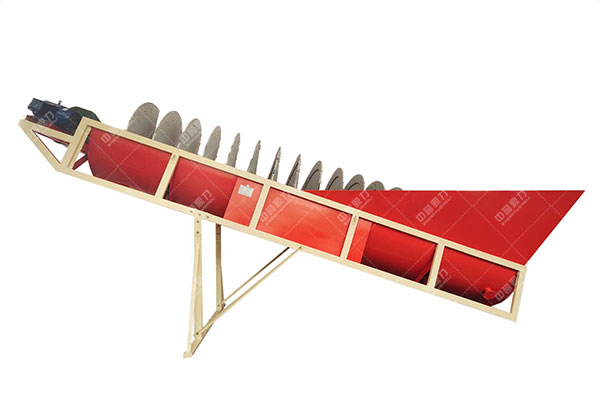 螺旋洗沙機工作時,電機通過V型皮帶、減速機、齒輪減速后驅動葉輪緩慢操作,砂石有送料槽進入洗槽中,在葉輪的驅動下翻滾,并互相碾磨,除去覆蓋砂石表面的臟東西,此時傷害包覆砂粒的水汽層,以利于脫水;此時加水,形成強大水流,立即將臟東西及比重小的異物帶走,并從溢出口洗槽排出,完畢清洗影響,干凈的砂石由葉片帶走,后砂石從操作的葉輪倒入出料槽,完畢砂石的清洗影響。